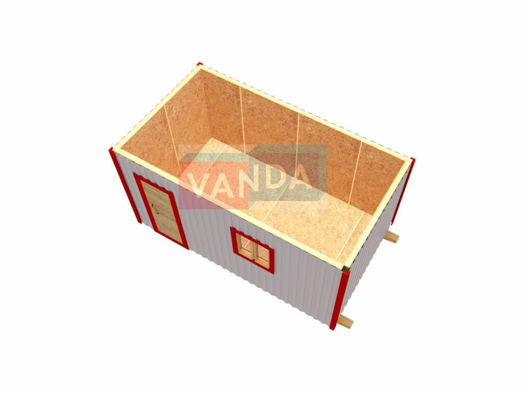 Строительная бытовка со сборкой на месте №2 (вариант 2) изготавливается из качественных материалов: обвязочный венец (сани): брус 100х150 мм., половые лаги: обрезная доска 40х150 мм., через 80 см. (плашмя), черновые полы: обрезная доска 20 мм. (2 сорт), (не сплошной настил, через 10 - 15 см.), чистовой пол покрыт: ДСП строительное 16 мм.. Для изготовления каркаса и перегородок используется: брусок 40х50 мм.. Для стропил используется: обрезная доска 40х150 мм., на кровлю ложится: оцинкованный профлист. Качественная наружная отделка: Профлист, внутренняя отделка стен: Оргалит-ДВП, внутренняя отделка потолка: Оргалит-ДВП. Выполнено утепление: Минеральная вата «ISOVER» – 50 мм. и пароизоляция: плёнка техническая. Бытовка комплектуется окнами: деревянное, двустворчатое, одинарное остекление 800х800 мм., входной дверью: деревянная, наборная и внутренними дверями: деревянная, наборная (при наличии перегородки).
